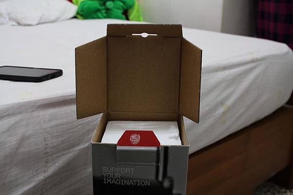 抽出來後放在床上~店家幫我裝到套子裡面~套子也是manfrotto經典配色