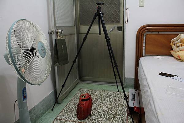 電扇與手套當比例尺(其實是空間太小電扇移不開~可惡!)